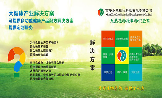 西安市小草植物科技有限責(zé)任公司成立于2004年,工廠位于西安市周至縣集賢工業(yè)區(qū),辦公室位于西安高新區(qū),一家具有進(jìn)出口權(quán)的技術(shù)型民營企業(yè)。